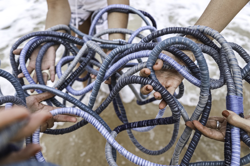 Segundo as artistas, a inspiração vem da Baia de Guanabara, Ilha da magia e da Baia de todos os Santos, que são lugares especiais para elas. “O mar nos une. Os nós da rede de pesca foram ponto de partida conceitual para nossa collab. Com os pés na areia e o coração no mar, lançamos nossa rede… ela junta, transpassa e entrelaça”, revelam no manifesto da coleção.