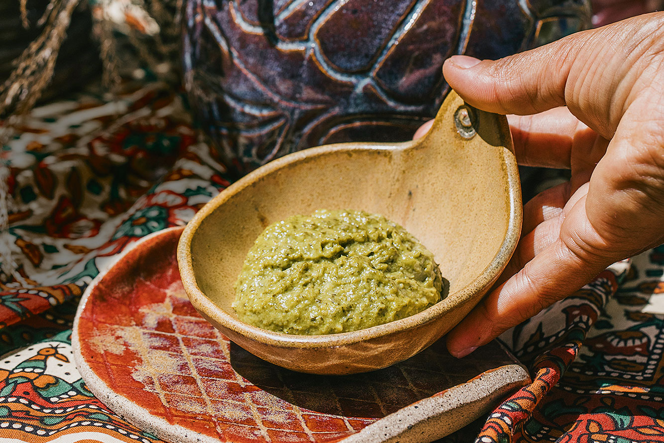 Quibe de abóbora e quinua recheado com ricota e cogumelos