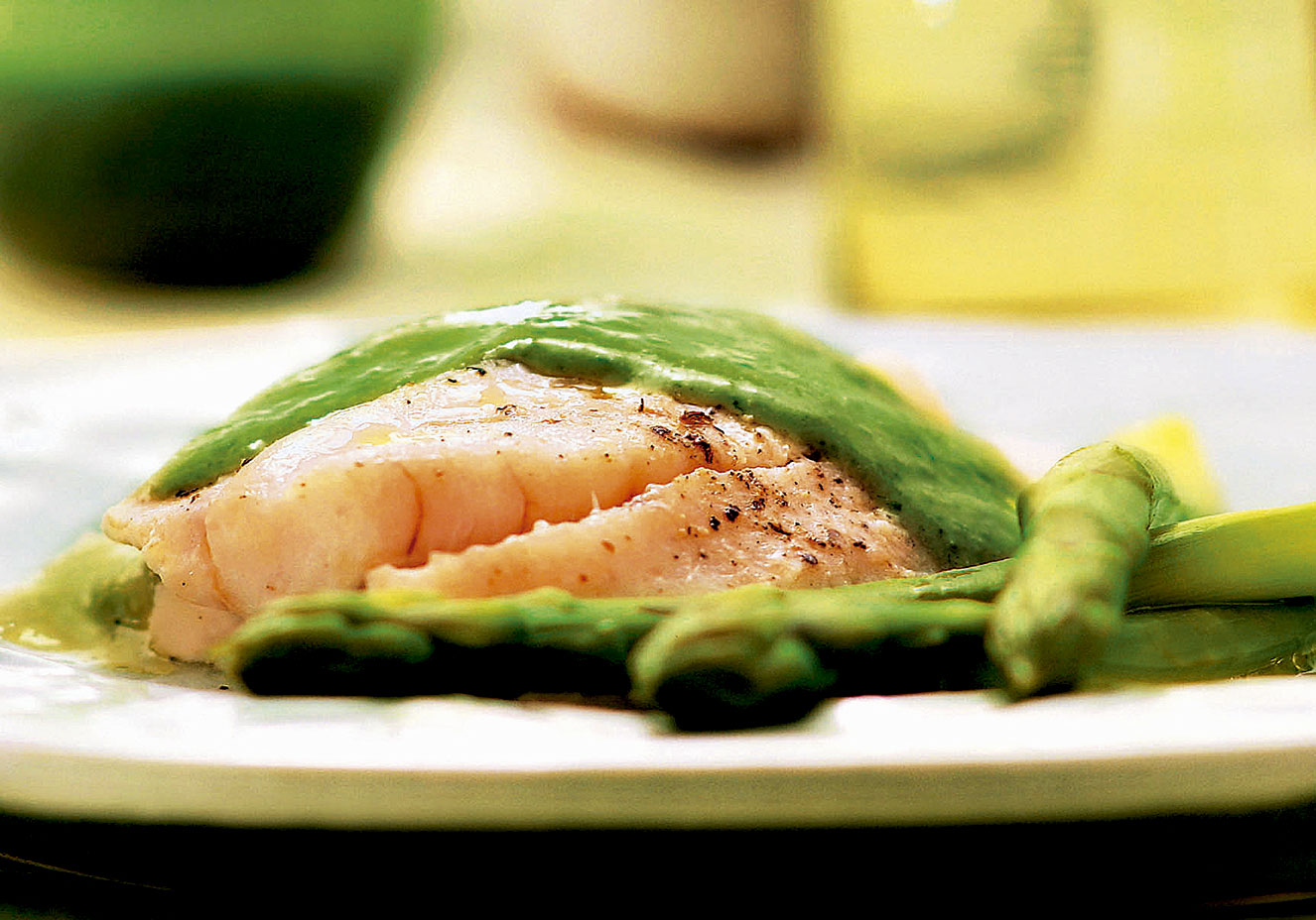 Procurando uma receita diferente para o cardápio light? Inclua esta receita de peixe com aspargos e molho pesto