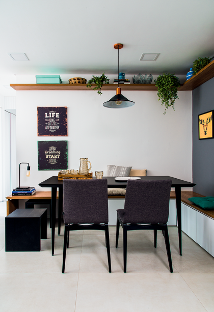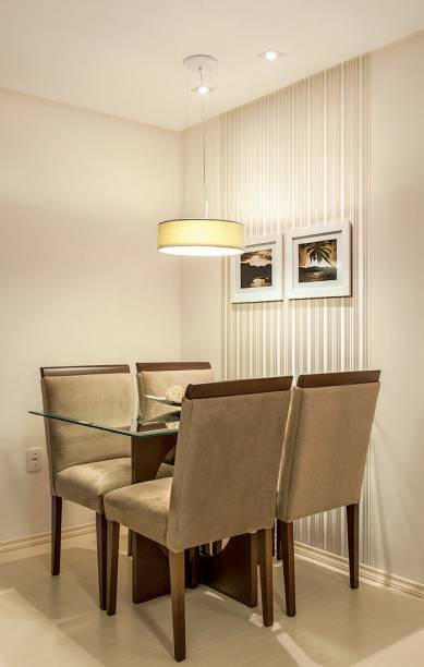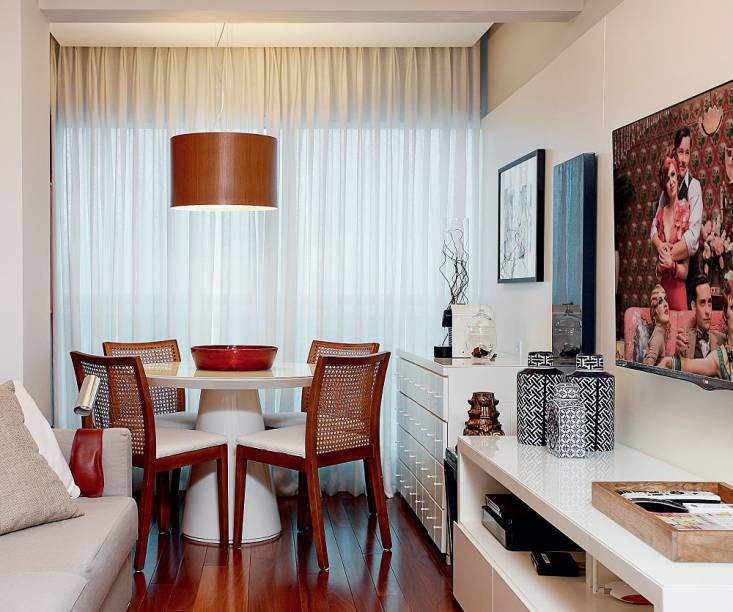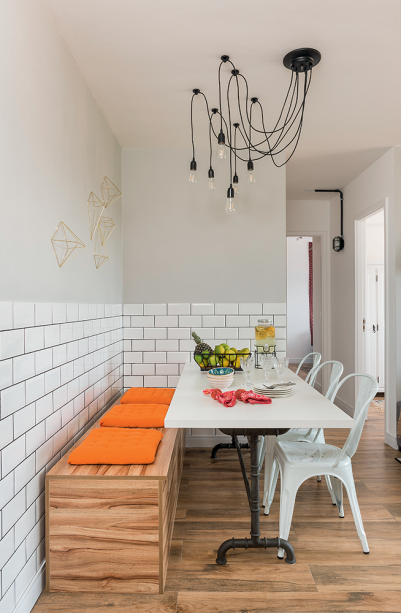 Cores claras, móveis de madeira e muito iluminação marcam a decoração destas salas de jantar