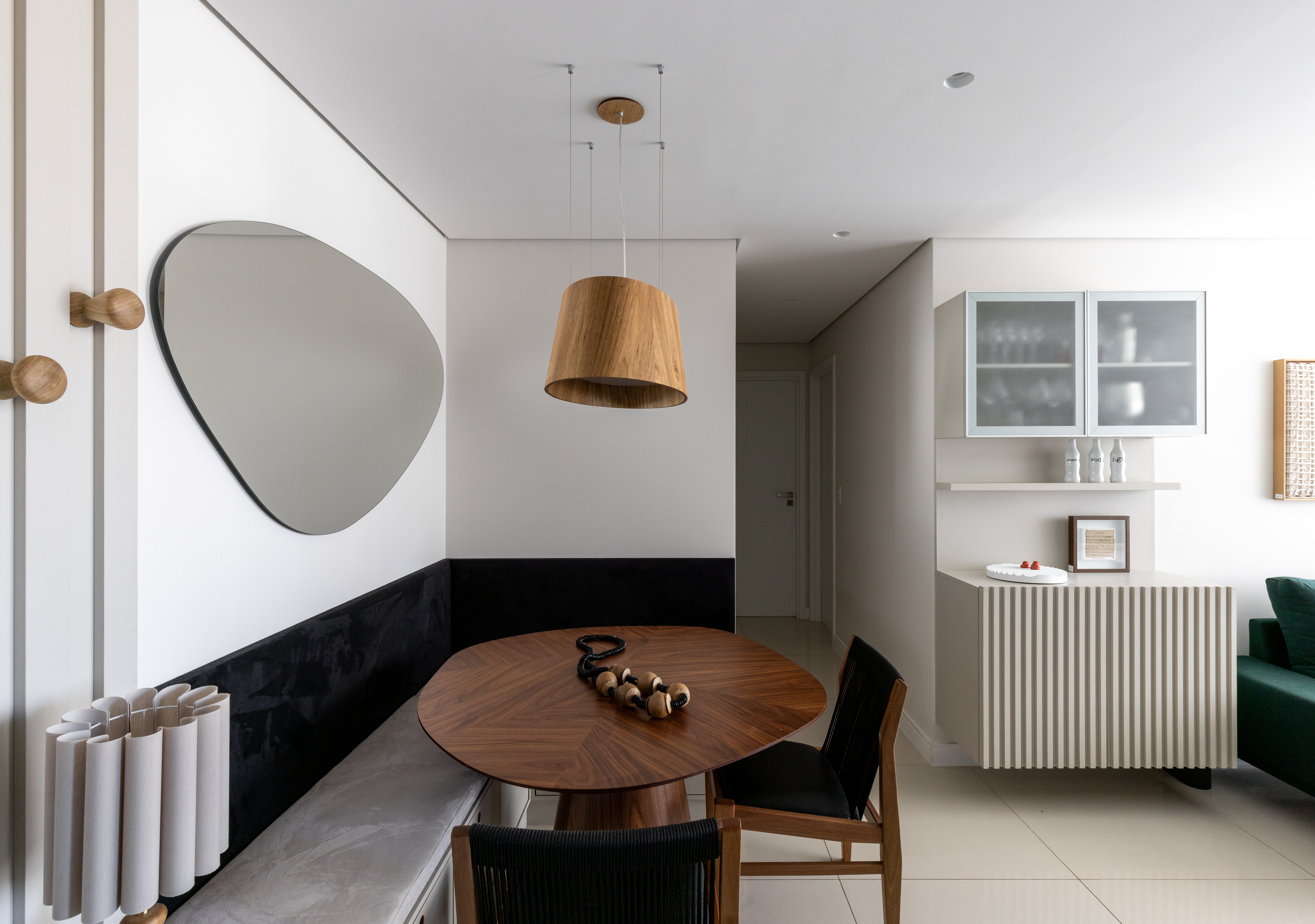 “Seja como item decorativo, para refletir a imagem dos moradores e melhorar a luminosidade de espaços mais fechados ou escuros, o espelho amplia visualmente os ambientes, entregando a sensação de parecerem maiores”, destaca a arquiteta Elisa Maretti.