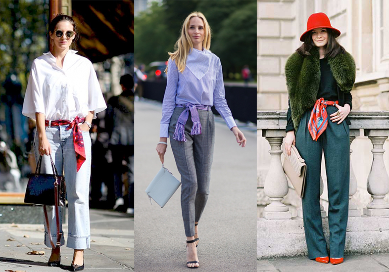 Um look totalmente casual para enfrentar o dia-a-dia é sempre uma boa ideia. Mas que às vezes, de tão básico acaba ficando até sem graça. Neste caso, a combinação da camisa, com um sapato de salto alto, um jeans clarinho fazem o lenço usado como cinto ter um efeito arrebatador – por ser a única peça colorida que mais chama a atenção na composição. Aposte em cores vibrantes como vermelho ou em estampas divertidas!