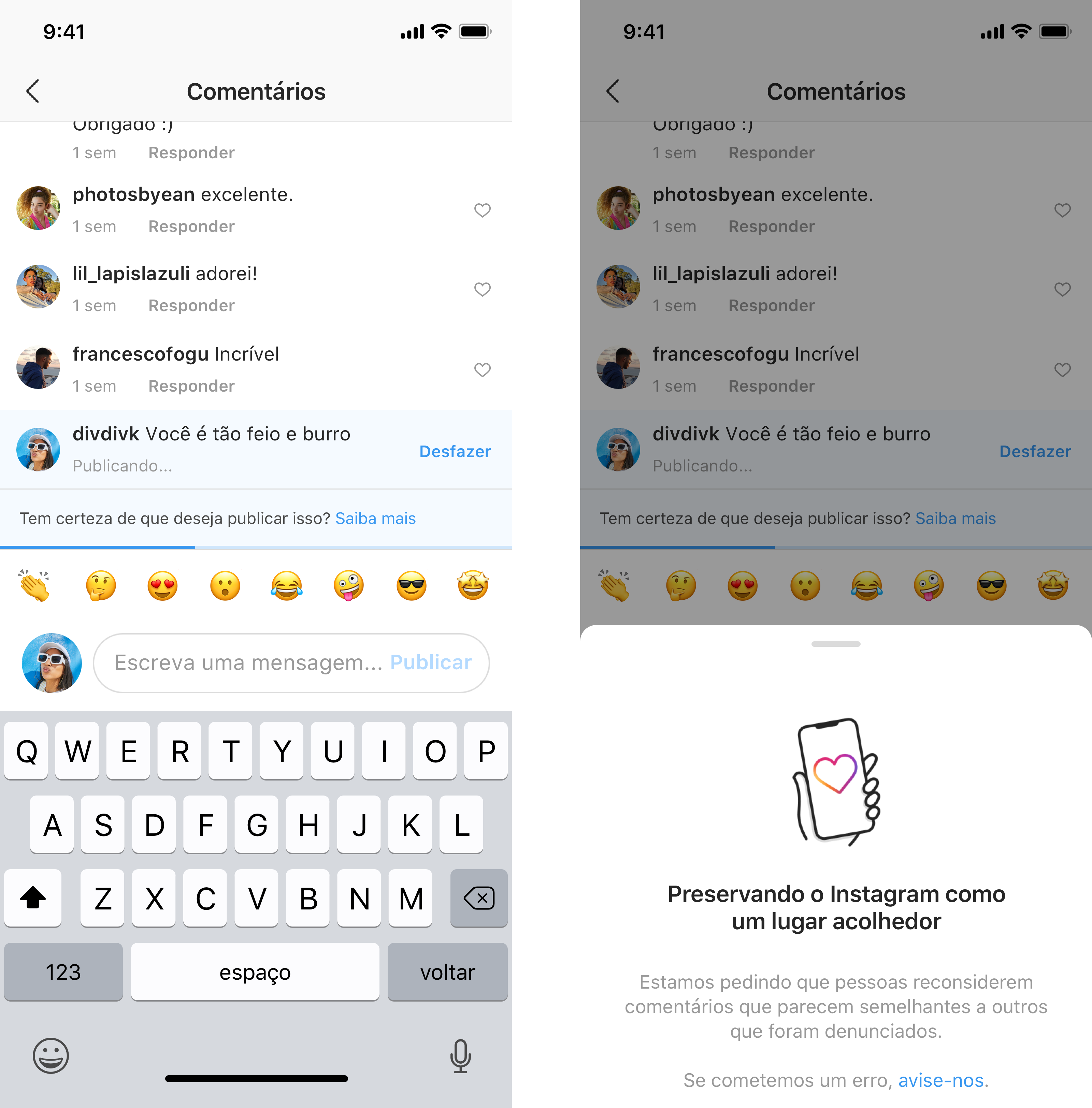 Esse recurso utiliza inteligência artificial para notificar caso seu comentário possa ser considerado ofensivo antes mesmo dele ser publicado.