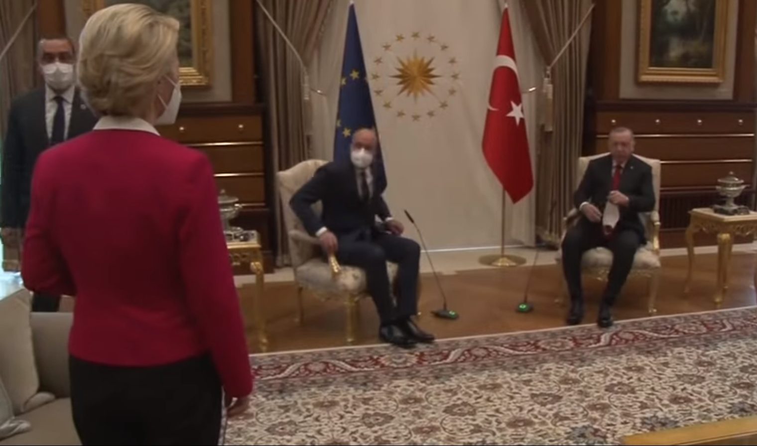 O Recep Tayyip Erdogan não forneceu uma cadeira para a presidente da Comissão Europeia, que teve seu direito de participar da reunião violado