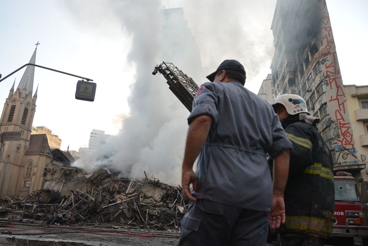 De acordo com informações da Veja.com, mais de 100 homens do Corpo de Bombeiros trabalham no momento em busca de vítimas. O incêndio começou por volta de 1h30 da madrugada, e o desabamento não demorou a ocorrer, por volta das 3h. As causas do incêndio ainda são desconhecidas, mas especula-se que o fogo tenha começado no 5º andar do prédio e se espalhado rapidamente devido ao acúmulo de lixo nos fossos dos elevadores.