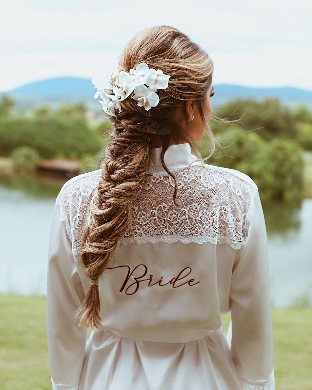 Thássia Naves usa vestido deuso em casamento ao ar livre